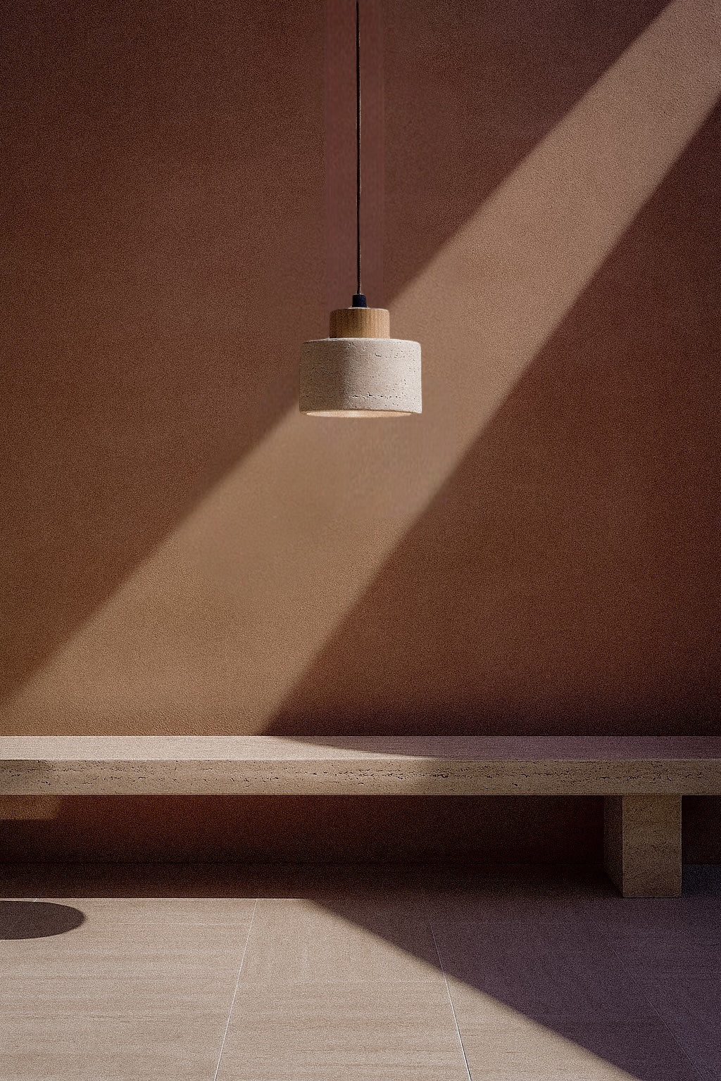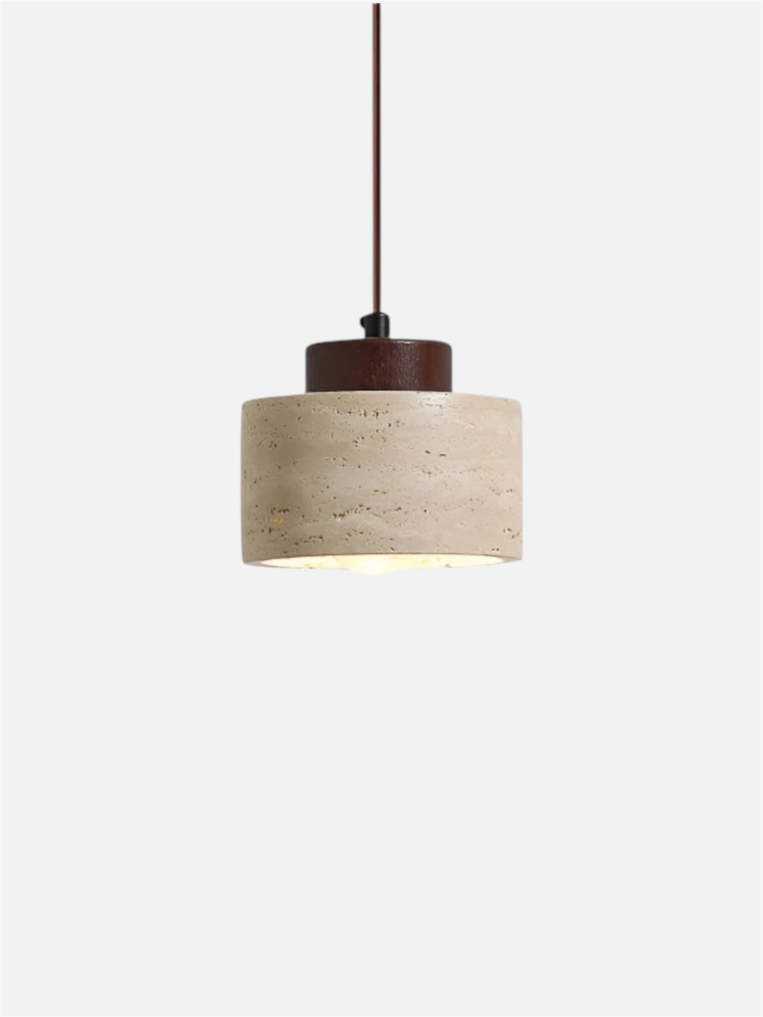 Geïnspireerd door minimalistisch Japans design, combineert deze lamp de natuurlijke schoonheid van travertijn marmer met warm notenhout.